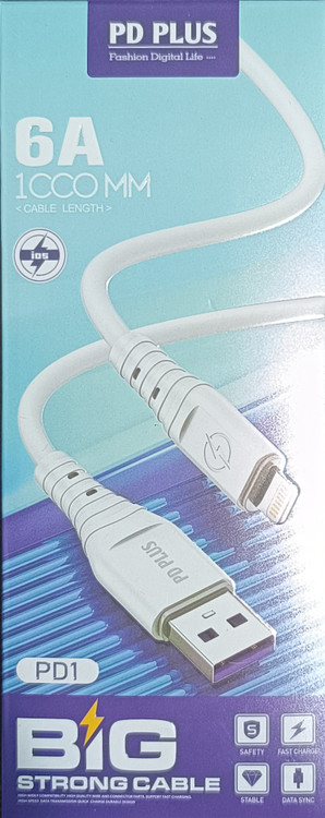 کابل گوشی موبایل آیفون سیلیکونی 6 آمپر- برند PD PLUS اورجینال